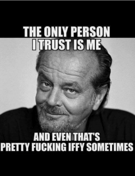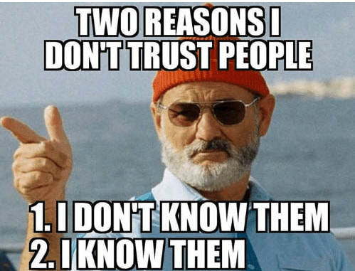 We don’t trust each other anymore. We don’t even always trust ourselves—I certainly don’t if there’s a box of chocolates anywhere in the house. 😉